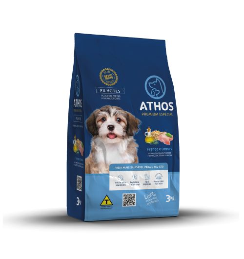 Fornecer a quantidade diária de ATHOS, nas quantidades sugeridas nesta embalagem. As quantidades diárias sugeridas geralmente são su cientes para que seu amiguinho permaneça forte e saudável, entretanto o consumo pode sofrer variações dependentes de raça, atividade física e características individuais. É sempre necessária a adaptação alimentar quando da troca do produto a ser fornecido, colocando 1/3 do produto novo nos primeiros 3 dias, metade por mais 3 dias e após somente o produto novo.
